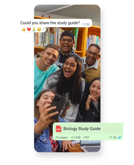 Large study guide? No problem. Send up to 2GB files to your classmates right from your group chat on WhatsApp.