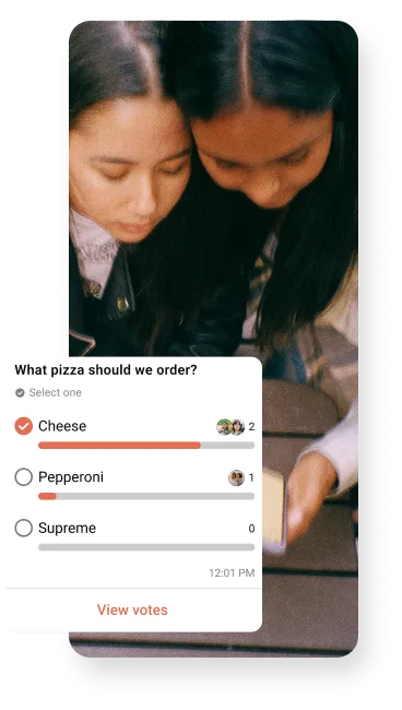 When the chat can’t agree on something, create a poll instead. And if you can’t find the words, GIFs, stickers, voice notes, and more can do all the talking.