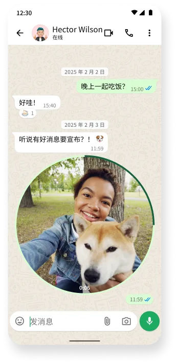 获取任何帮助,全程尽享 WhatsApp 安全和隐私保障。